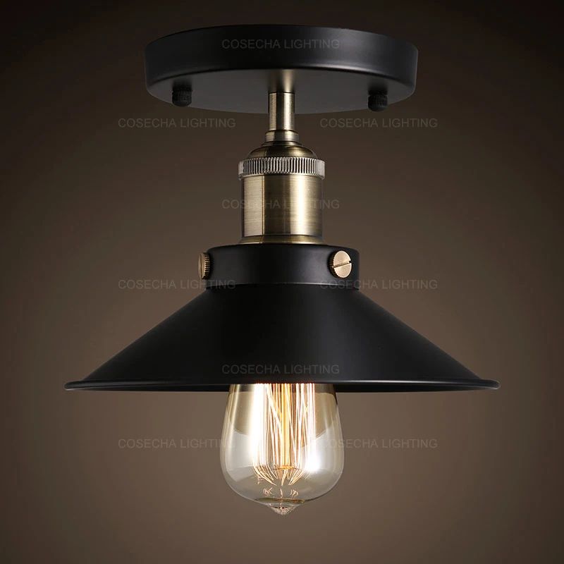 Accent your indoor ceiling place with adorable ceiling lights in crystal or modern style or others, buy ceiling lights here on ceiling lights sale, you will own elegant ceiling lights for your 14'' wide semi flush ceiling light in barn shade textured black metal single ceiling light for kitchen warehouse.